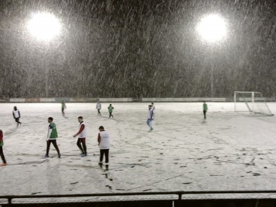 Les juniors C1 ont bravé la neige lors de leur entraînement du lundi 7 mars! Courageux!
