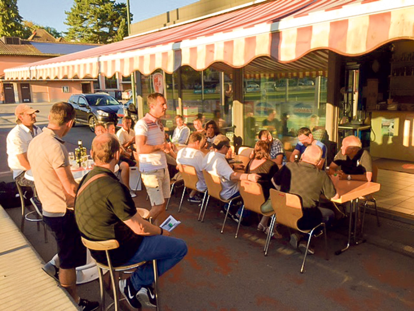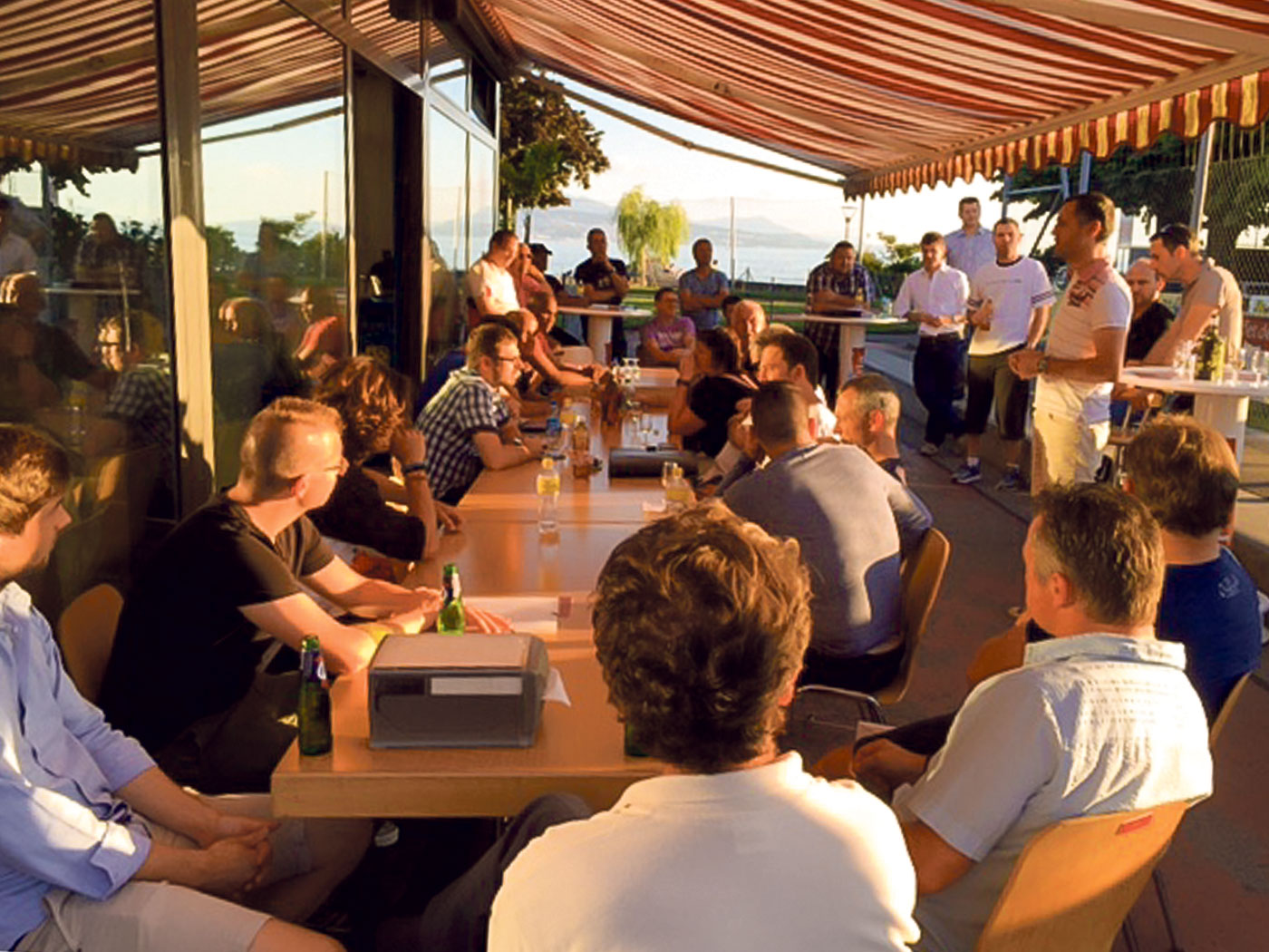 Apéro de fin de saison à la buvette avec tous les entraîneurs du FC Lutry .