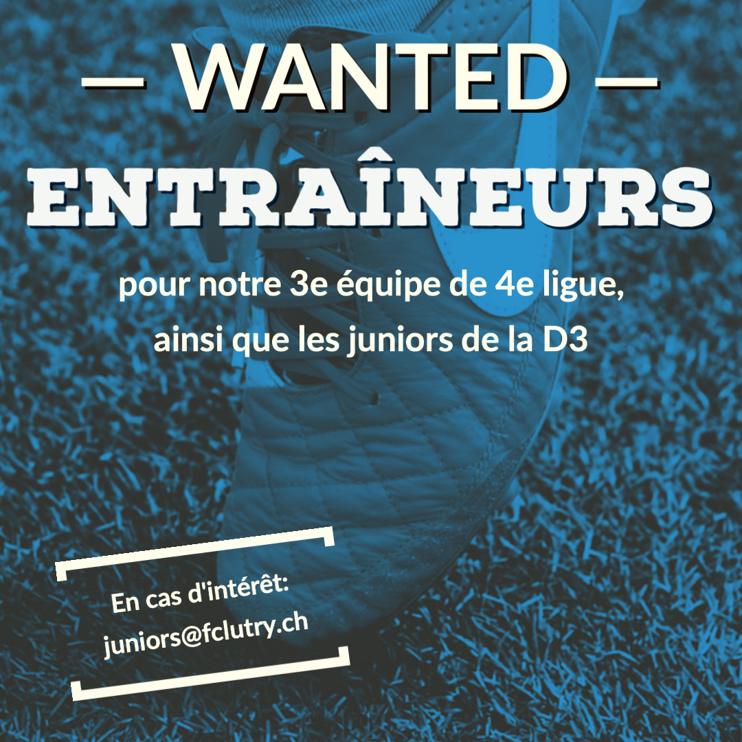 Pour la saison 2020-2021, le FC Lutry recherche des entraîneurs pour sa 3e équipe de 4e ligue ainsi que pour ses juniors D3. En cas d’intérêt n’hésitez pas à contacter notre responsable juniors à l’adresse juniors@fclutry.ch.