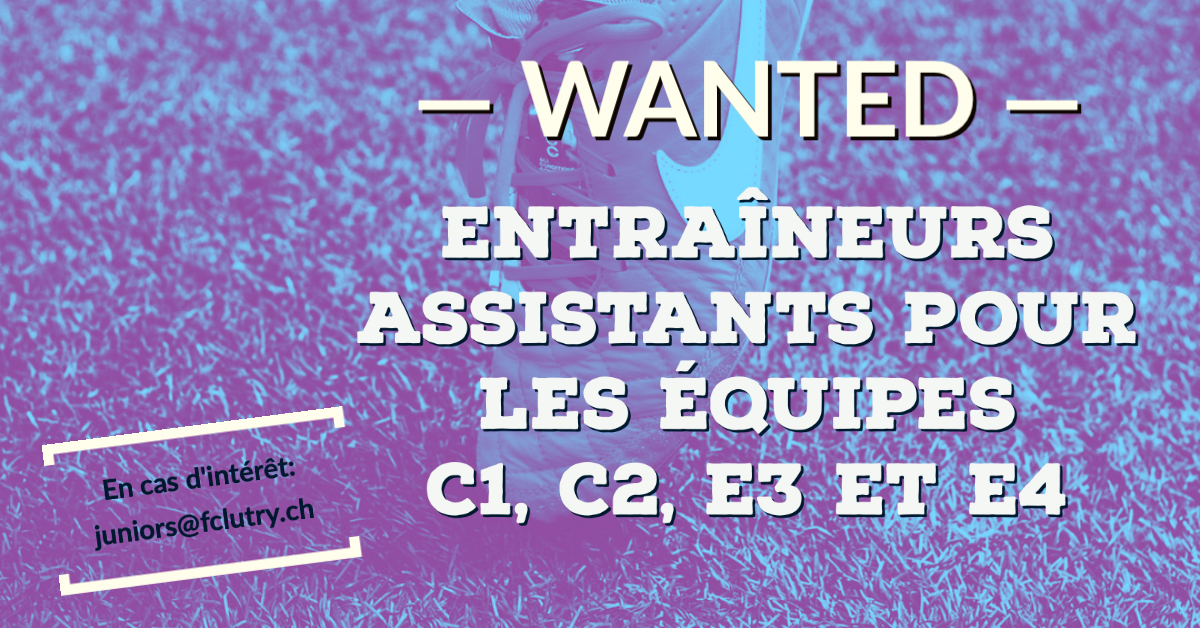 Recherche entraîneurs assistants pour les équipes C1, C2, E3 et E4